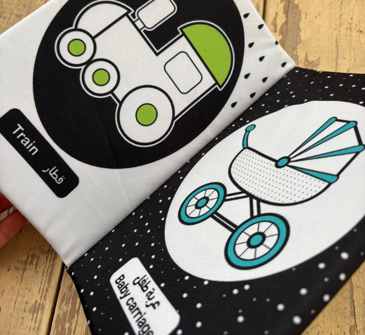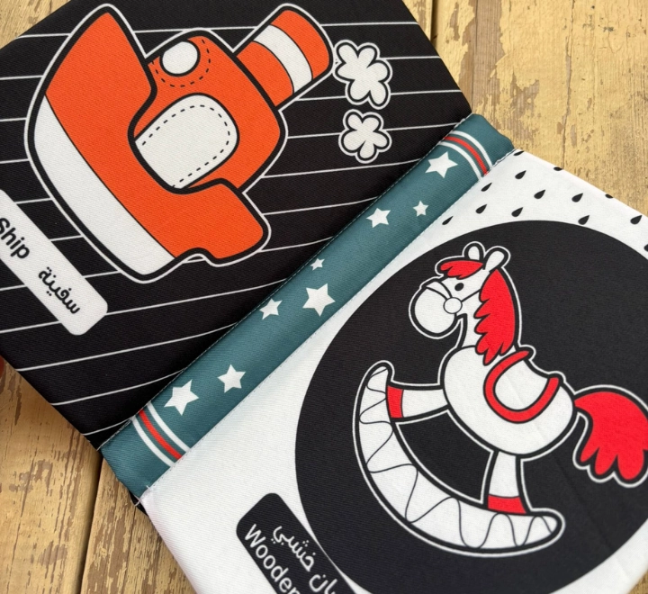 “اكتشف الحيوانات / كتاب قماشي” هو كتاب قماشي مصمم للأطفال منذ الولادة لتحفيز البصر وتنمية الحواس.