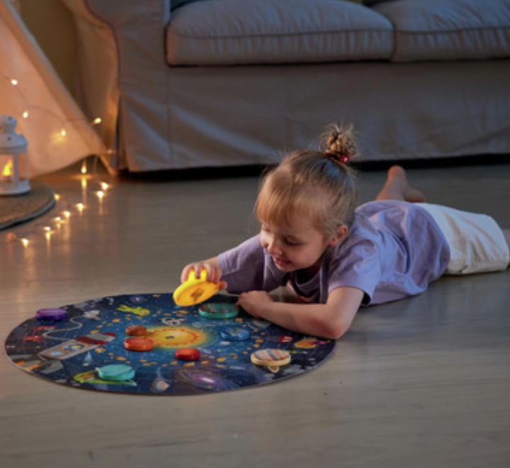 لغزٌ يُمكنك تجميعه وتعلّم الكثير عن النظام الشمسي منه! يتضمن ملصقًا مطابقًا يحتوي على بيانات شيّقة (غير مُتاحة بالعبرية).