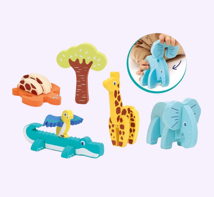 بازل بناء ملونة تشجع على الخيال والابداع والتطور الحركي منذ الصغر . يستطيع الطفل تجميع وتفكيك ودمج الاشكال والشخصيات ليبتكروا في كل مره مخلوقا جديدا
