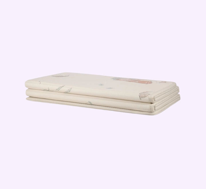 . مطبوع عليه رسومات توضيحية رائعة وجذابة. البساط مريح وسهل المسح والتنظيف. مصنوع من مادة XPE، وهي مادة عازلة للحرارة والبرودة ومقاومة للماء. يُستخدم البساط من قِبل الطفل في جميع مراحل نموه، وهو مصمم لتلبية احتياجاته المتنوعة – بساط ممتاز لوقت الاستلقاء على البطن، ومنطقة آمنة لبداية الزحف، ومكان ممتع للعب، وبساط تعليمي يُشجع الطفل على تمييز الألوان والحيوانات من خلال الرسومات المطبوعة. على أحد وجهي البساط، تظهر رسومات يدوية مستوحاة من الغابة، مع مجموعة متنوعة من الحيوانات والنباتات بألوان زاهية تُشجع على التعلم دون إثارة الطفل بشكل مفرط. على الجانب الآخر من السطح، يظهر نقشٌ رقيقٌ وجميلٌ لأوراق الشجر، يُناسب أي غرفة معيشة أو غرفة أطفال، أو كخلفيةٍ رائعةٍ لجلسات تصوير الأطفال. يُنظف بمسحه بقطعة قماشٍ مبللة. العمر المُوصى به للاستخدام: من عمر شهرٍ فما فوق. أبعاد السطح: 200 سم × 150 سم. السُمك: 1 سم. تركيبة الطبقة العلوية والسفلية: غشاء بولي إيثيلين، الحشوة: رغوة بولي إيثيلين متقاطعة. بيئة الاستخدام المثالية: في المنزل، على سطحٍ مُستوٍ وأملس. خالٍ من الفثالات، والرصاص، والزئبق، والـ PVC، والـ BPA.