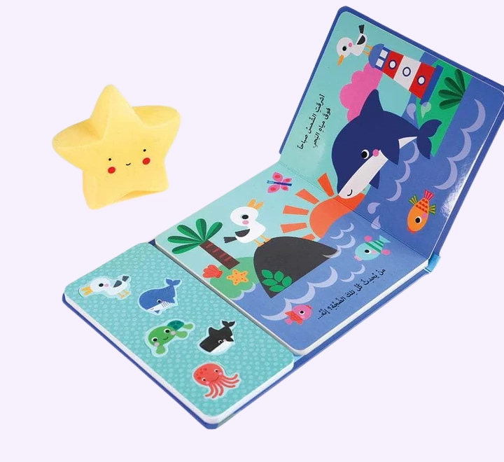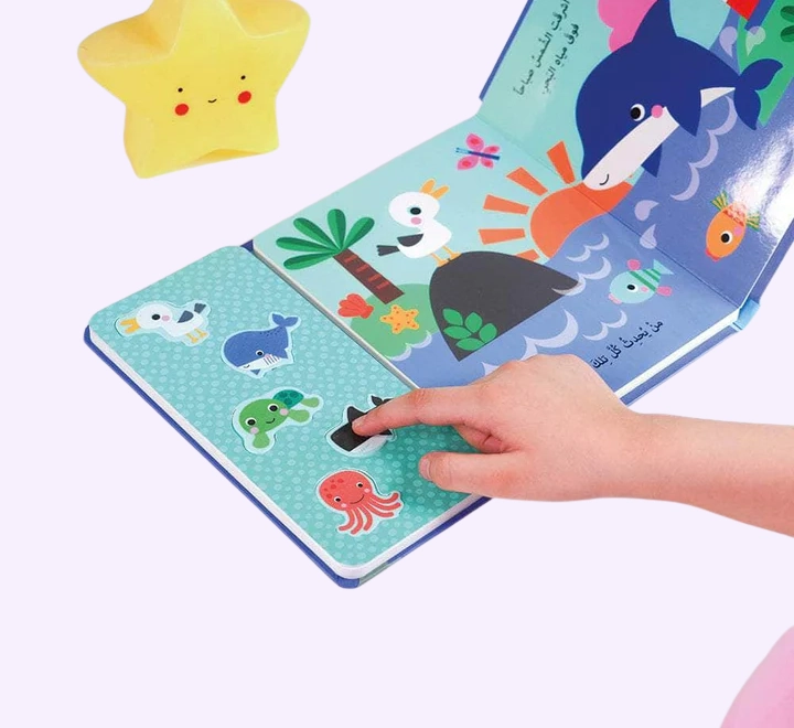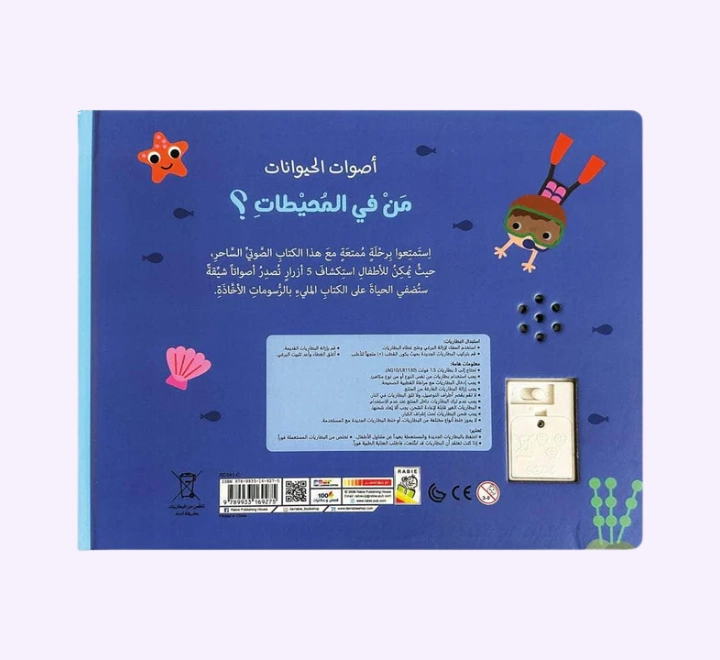 استمتعوا برحلةٍ ممتعةٍ مع هذا الكتاب الصّوتيّ السّاحر، حيث يمكن للأطفال استكشاف 5 أزرارٍ تصدر أصواتاً شيّقةً ستضفي الحياة على الكتاب المليء بالرّسومات الأخّاذة.