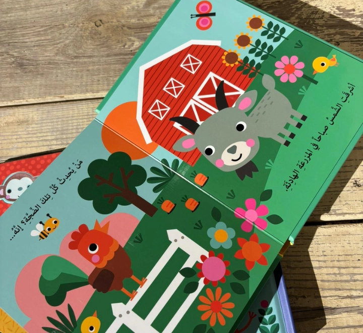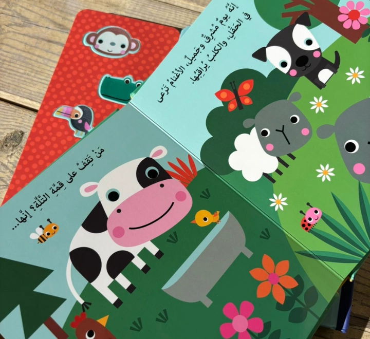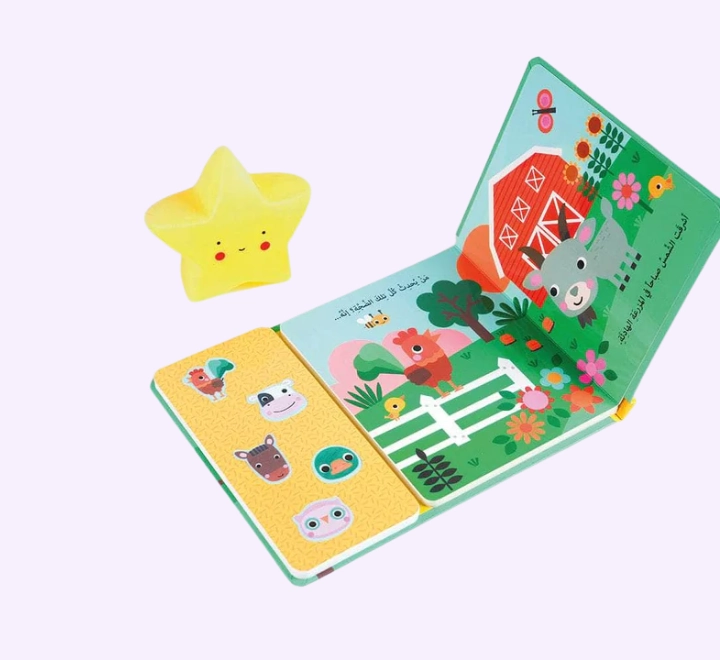 استمتعوا برحلةٍ ممتعةٍ مع هذا الكتاب الصّوتيّ السّاحر، حيث يمكن للأطفال استكشاف 5 أزرارٍ تصدر أصواتاً شيّقةً ستضفي الحياة على الكتاب المليء بالرّسومات الأخّاذة.